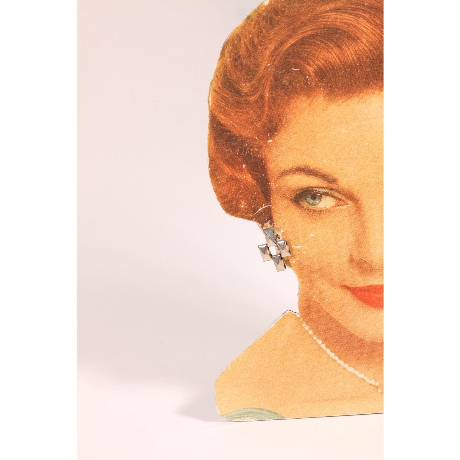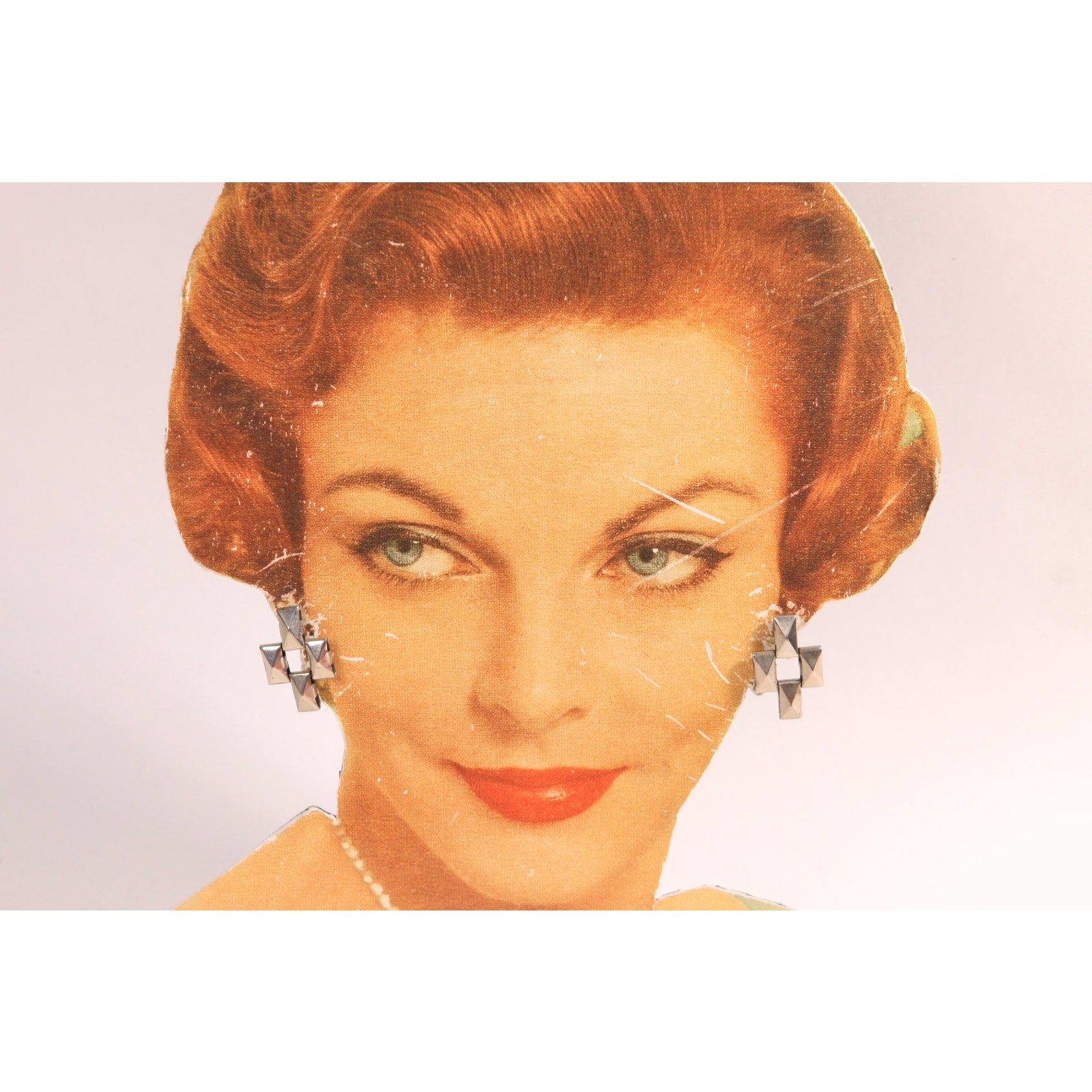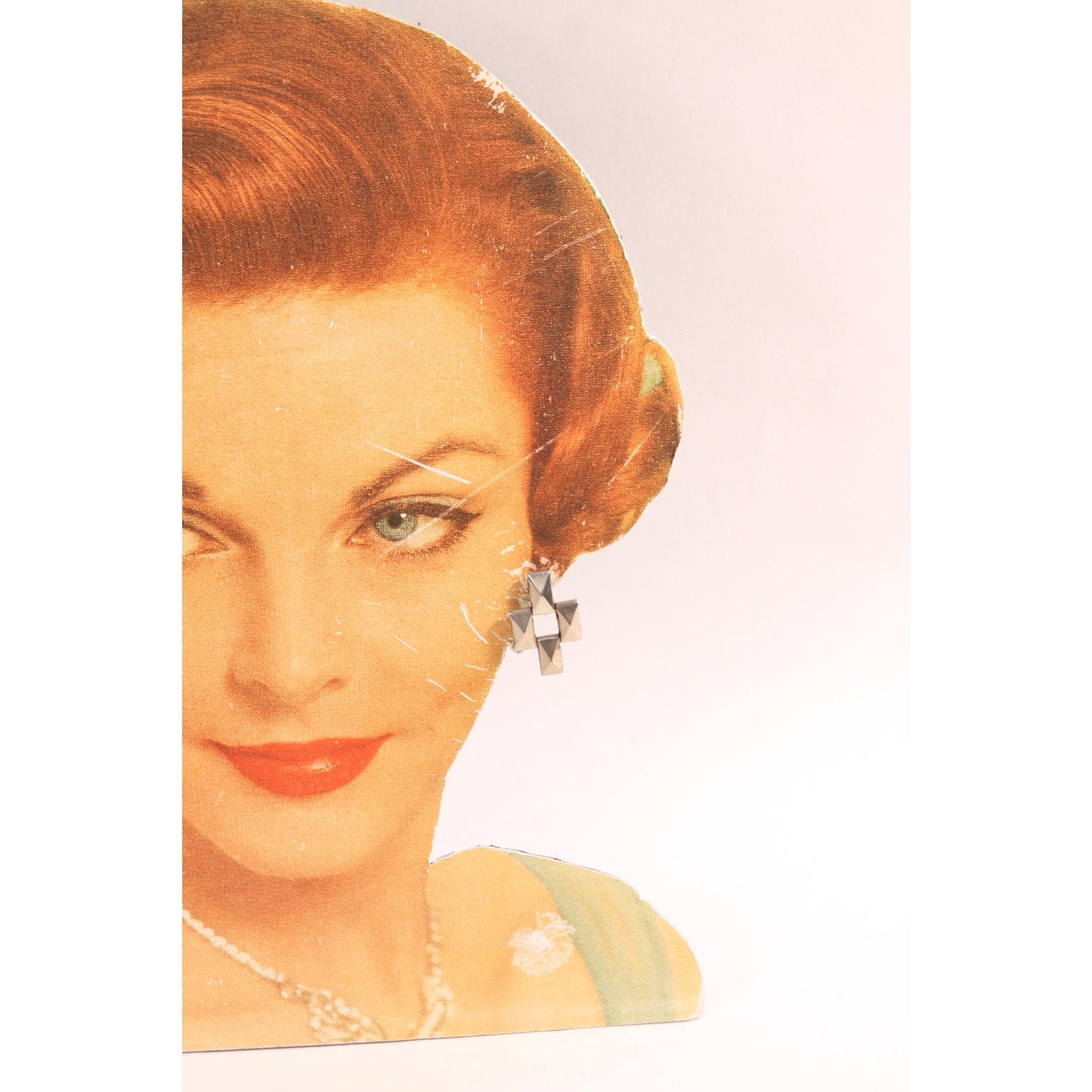 1950s 1960s Silver Tone Geometric Screw Back Earrings