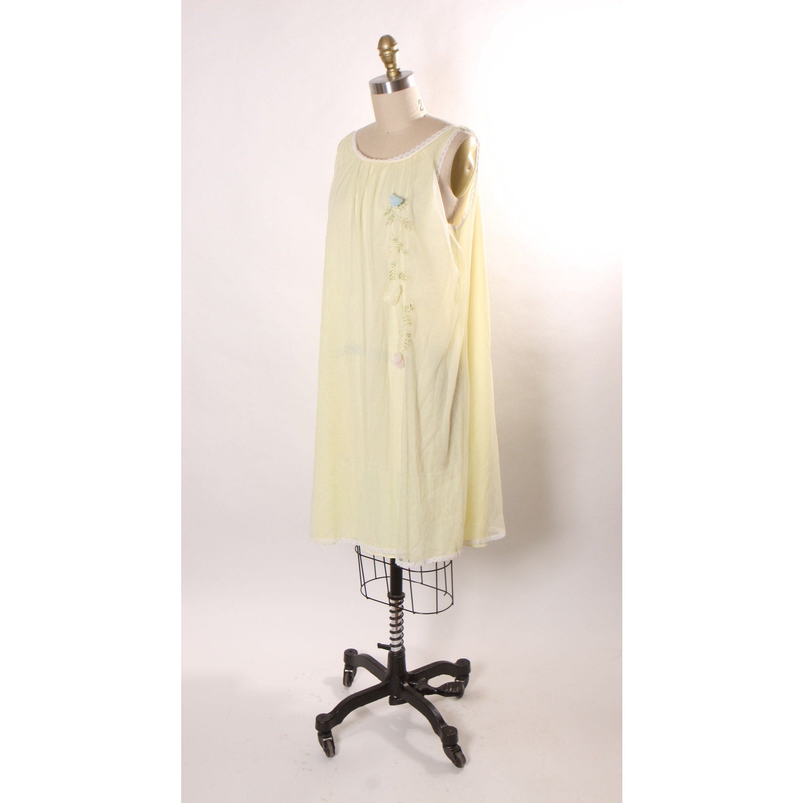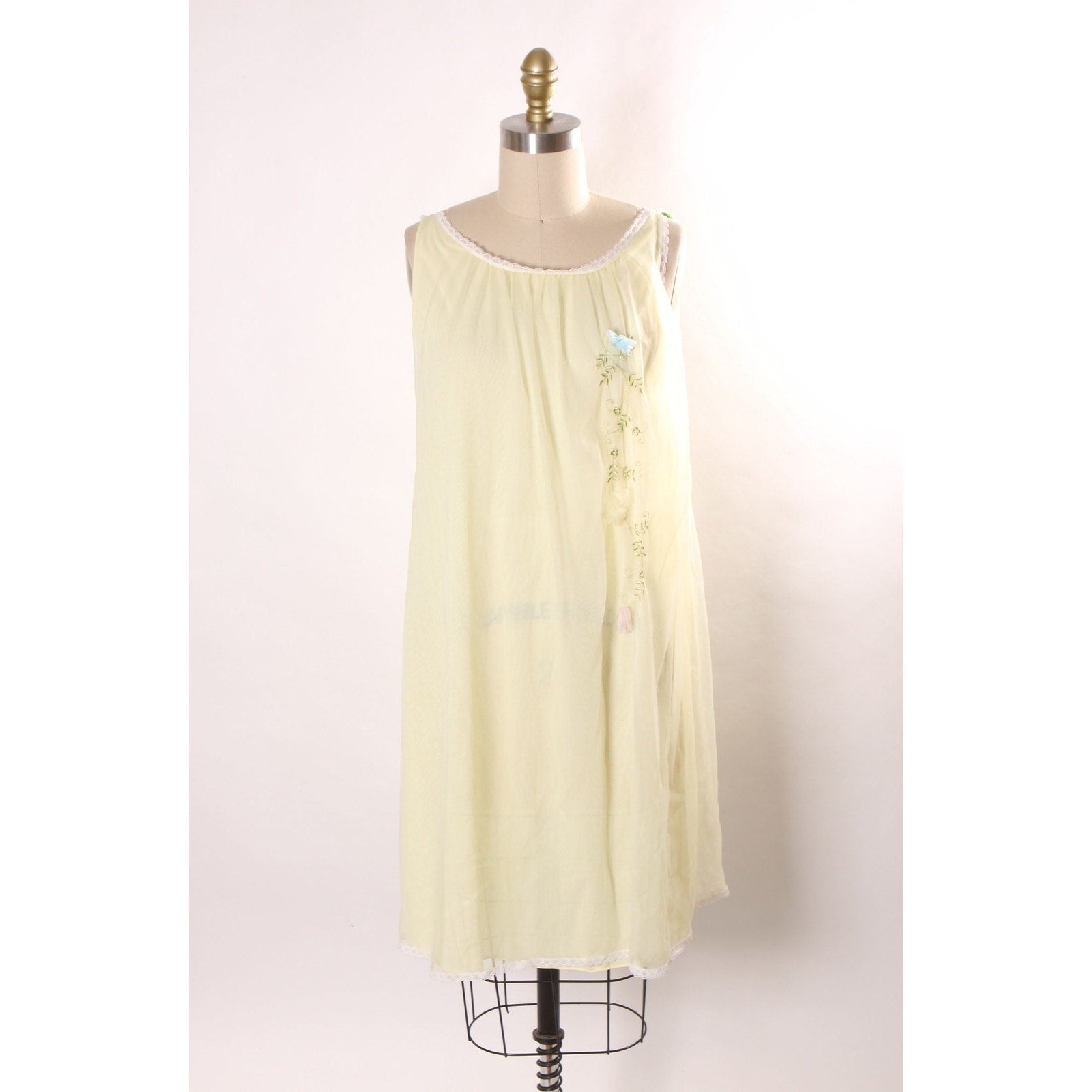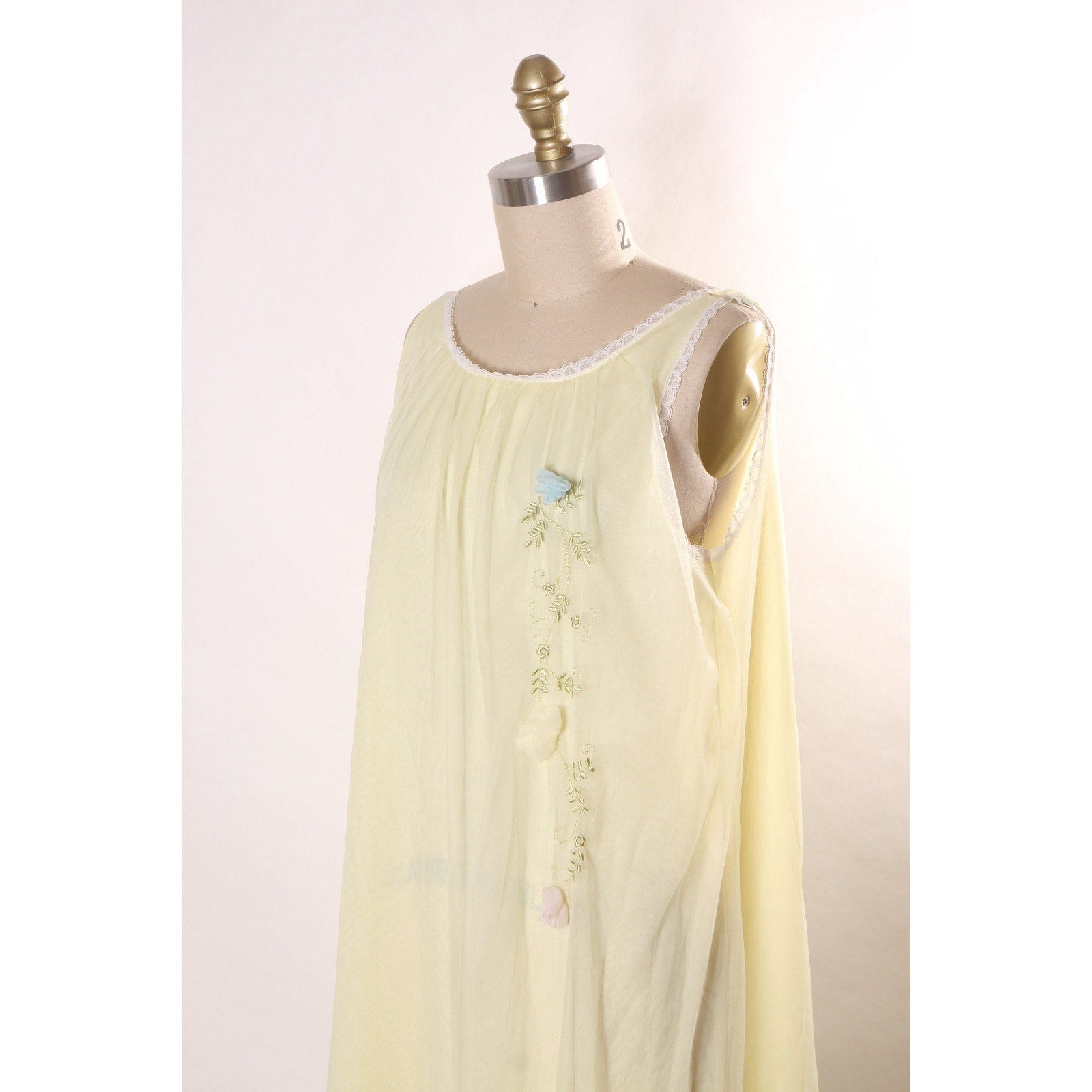 1950s 1960s Yellow, Green and Blue 3D Flower Floral Nylon Lingerie Night Gown by Nan Flower