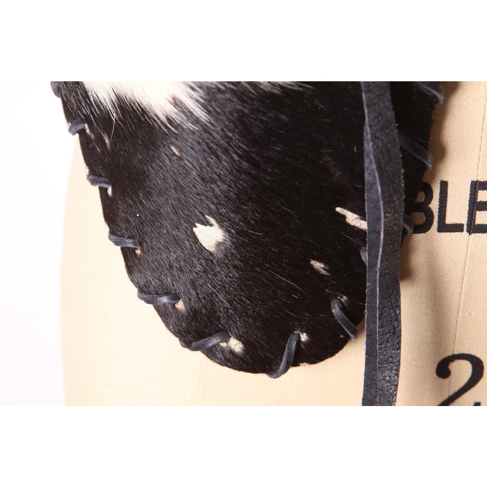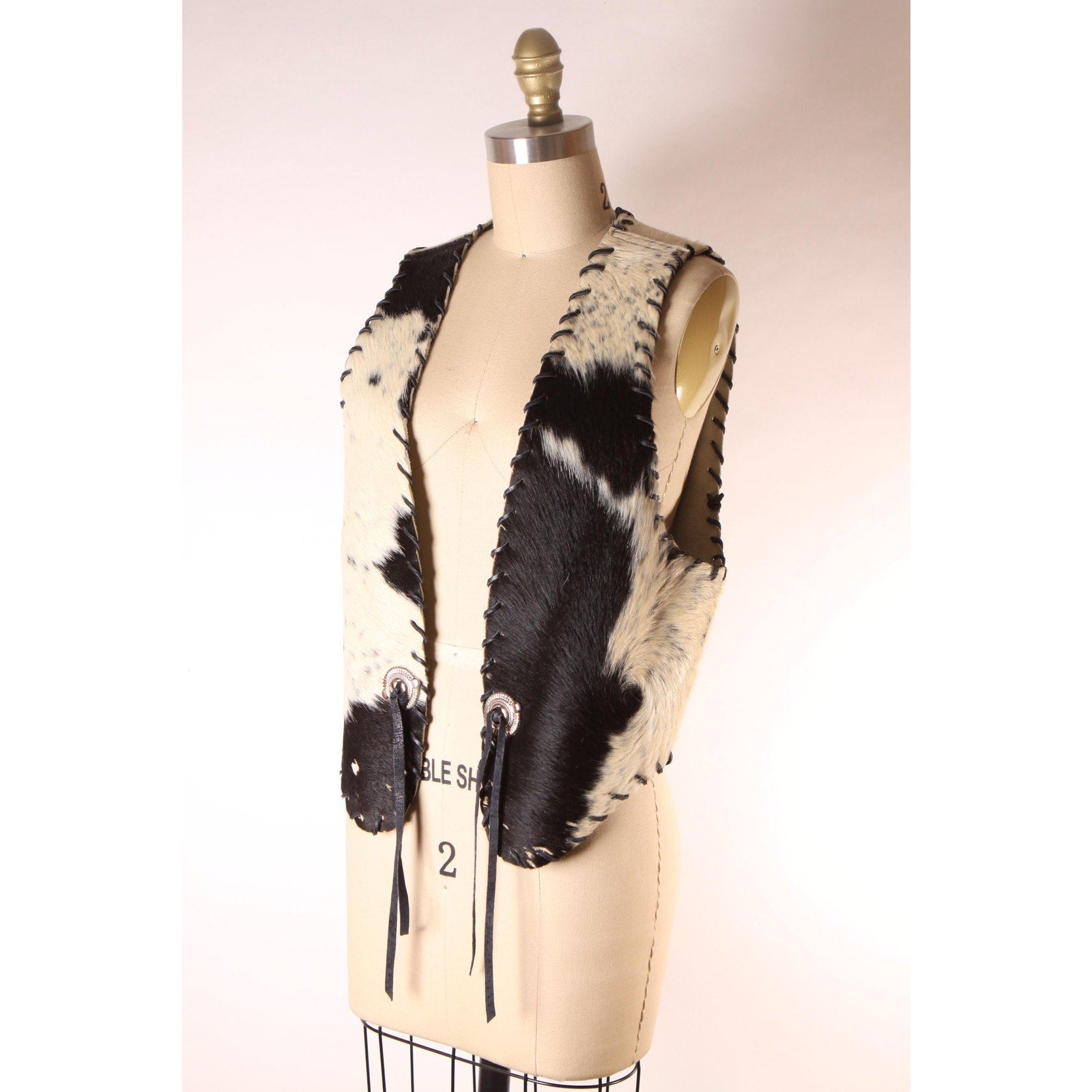 1970s Black and White Cowhide Leather Hair Cow Print Open Front Western Cowgirl Vest