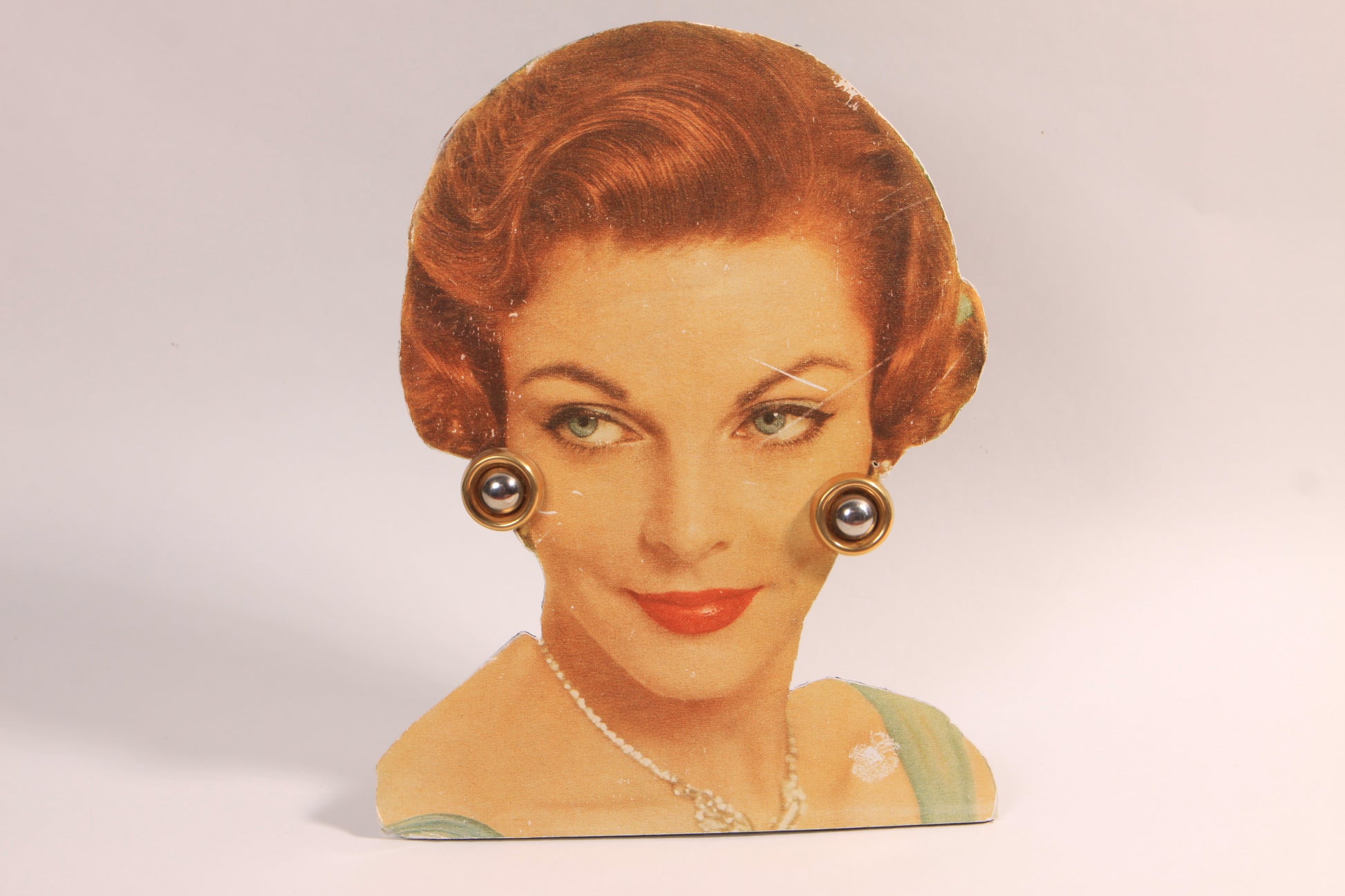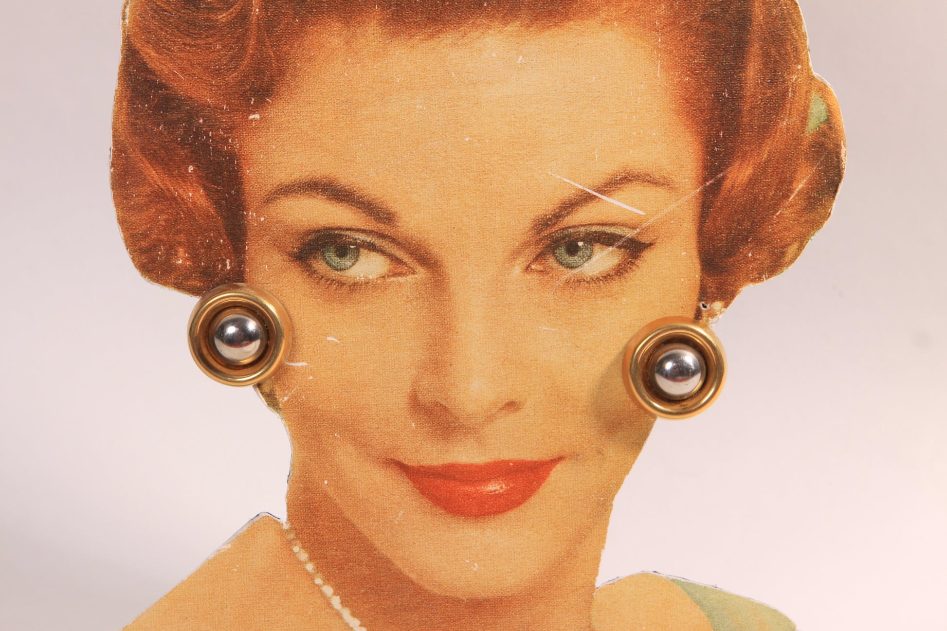 Late 1960s Early 1970s Silver and Gold Tone Metal Circle Screw Back Earrings
